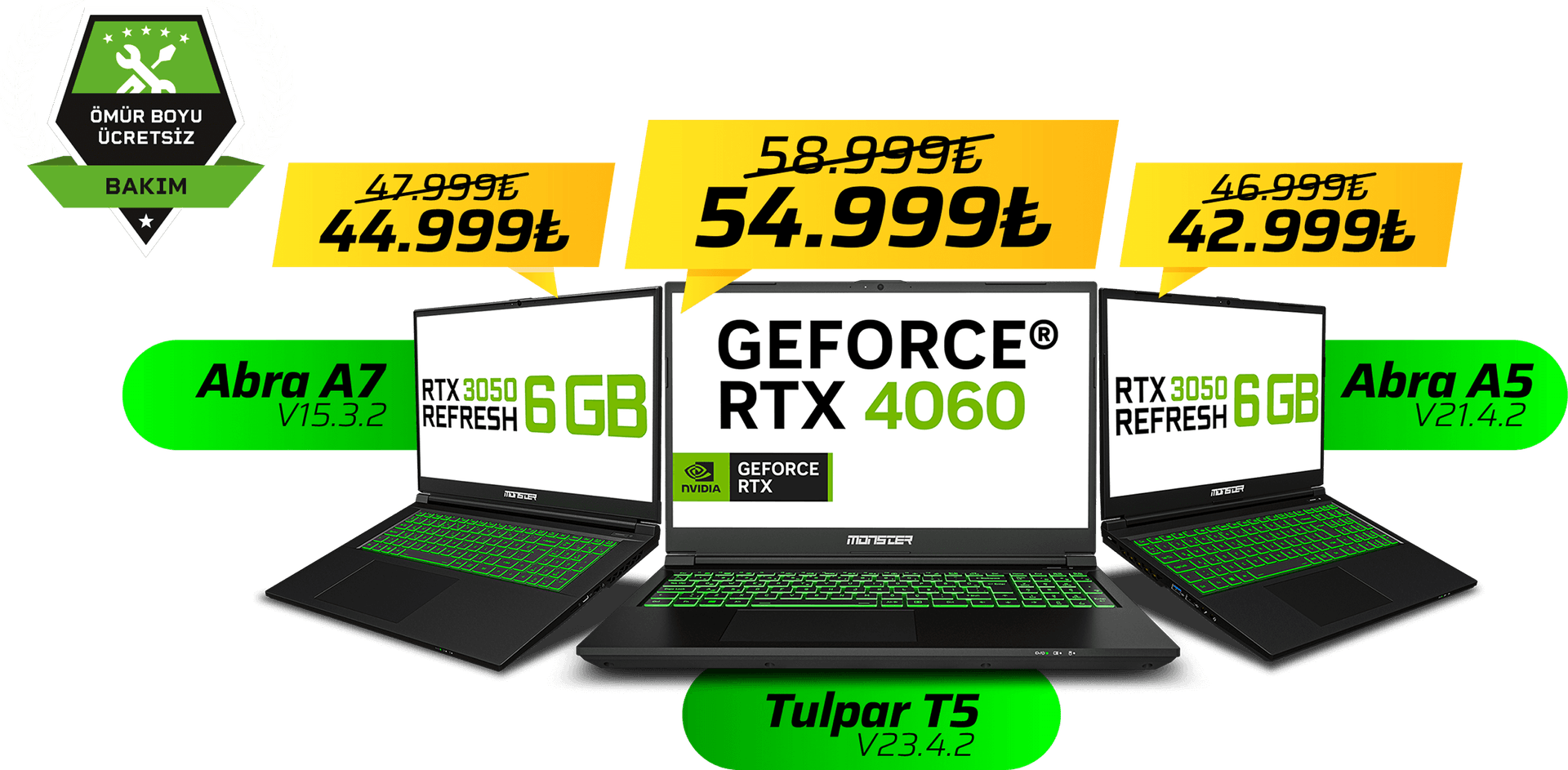 Seçili Monster laptoplarda, mayıs ayına özel 4.000 TL’ye varan indirimler seni bekliyor.